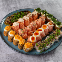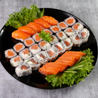 16 Maki de salmão 10 Niguiri de salmão 10 Sashimi de salmão 10 Hot Filadélfia Não acompanha (Shoyu,Teriaki, Porta Shoyu e Hashi) Obs: Não fazemos modificação no Combo.