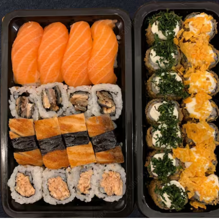 O combo contém Hot Doritos (4 unidades), Hot Couve (4 unidades), Uramaki Sweet (8 unidades), Niguiri de Kani (8 unidades), Uramaki California (8 unidades), Uramaki Skin (8 unidades), Niguiri de Salmão (8 unidades) e Niguiri Skin (8 unidades). Não acompanha shoyu, teriyaki, porta shoyu e hashi. Não realizamos modificações no combo. #japonesa #chinesa #shoyu #salmão #camarão #sushi #yakisoba #temak