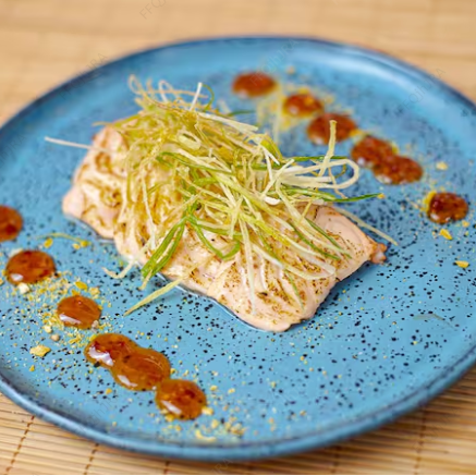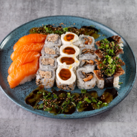 Porção com 8 unidades de fatias de salmão ao molho especial do chef. Não acompanha shoyu, teriyaki, porta shoyu e hashi.