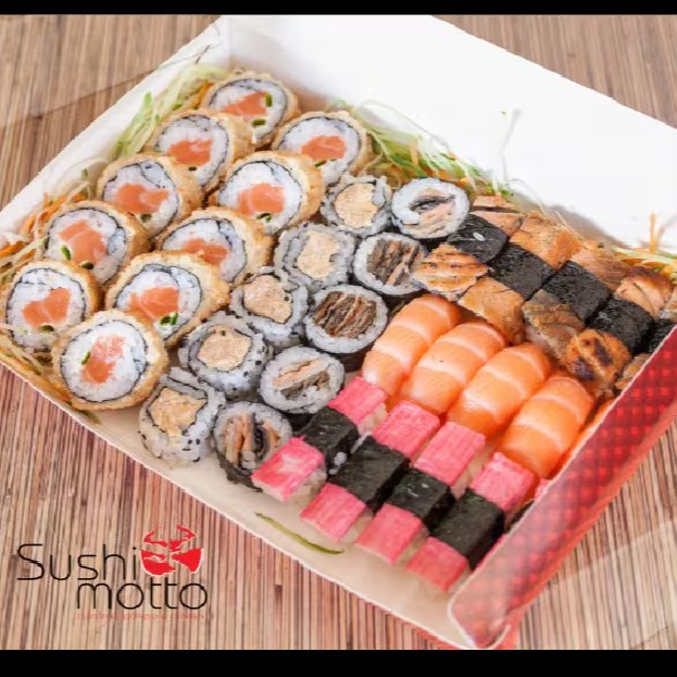 10 sushis salmão. 6 pele. 4 atum. 4 p. Branco, 10 sashimis salmão. 4 sushis p. Branco. 4 maki salmão. 4 filadélfia. 4 maki kani, 4 maki morango. 4 ura skin, 4 ura salmão cheddar, 4 califórnia, 4 tortinhas, 4 ura pele, 8 hot filadélfia. 5 jow cheese, 5 jow cheddar e 4 higawere.