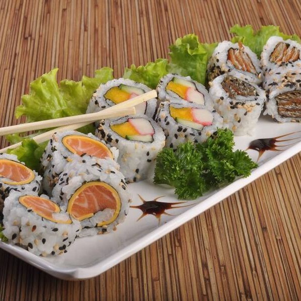 5 maki kani, 5 maki salmão, 5 california, 5 hot filadelfia, 5 maki nokawa, 5 uramaki skin