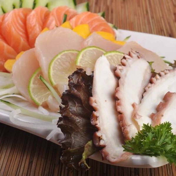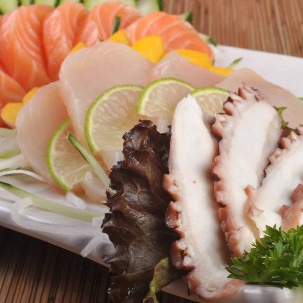 5 salmão, 5 atum, 5 camarão, 5 sada, 5 radock e 5 polvo.