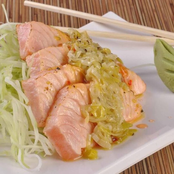 Sashimi De Salmão Flambado Ao Molho Sweet Sauce