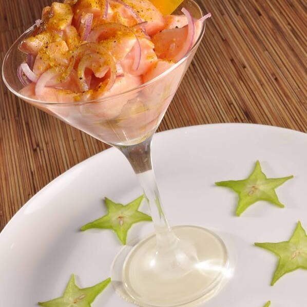 Mix de todos os peixes da casa marinados com limão siciliano e laranja.