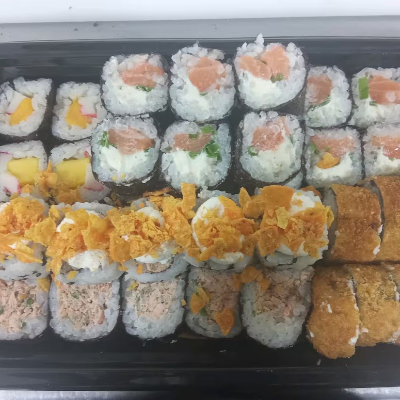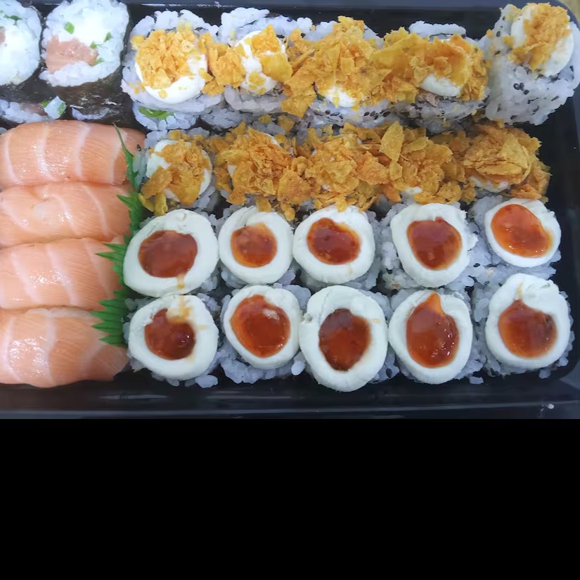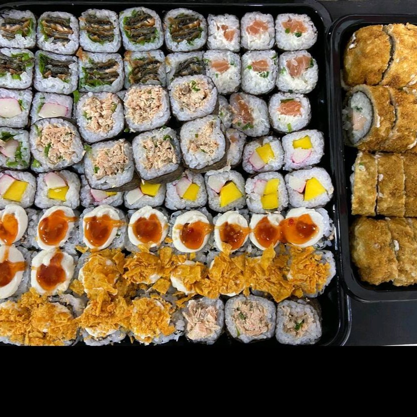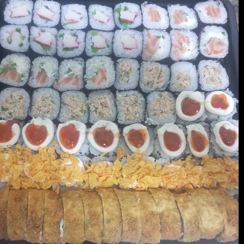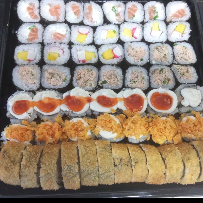 10 makes Filadélfia, 10 hots filadelfia, 10 makes grelhado, 10 makes tropical,5 Huramakes com creme chesse e Doritos,5 Huramakes com creme chesse e geleia de pimenta.Esse combinado não acompanha molhos.
