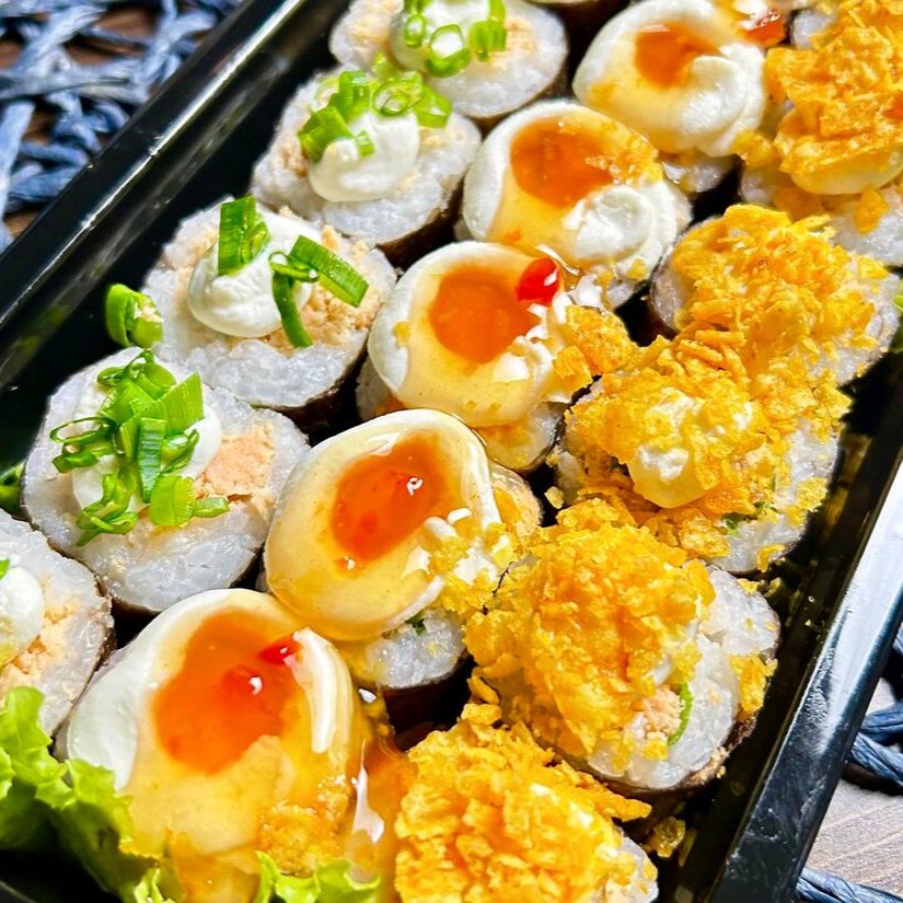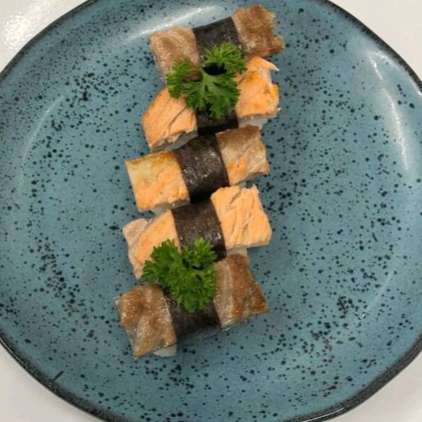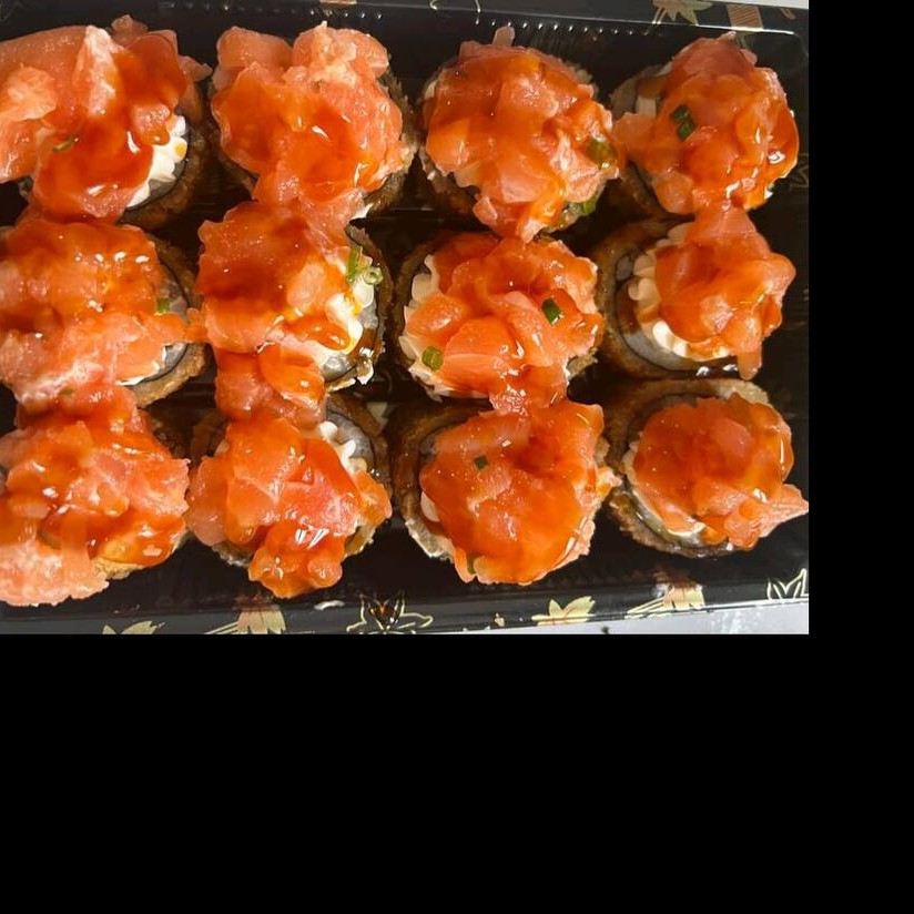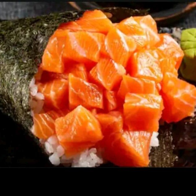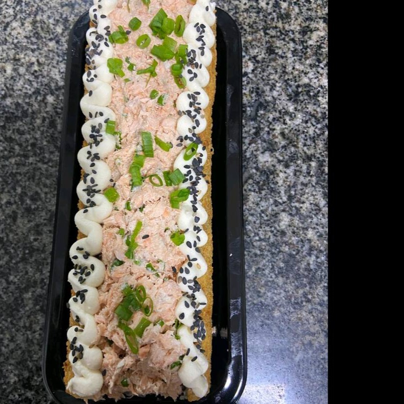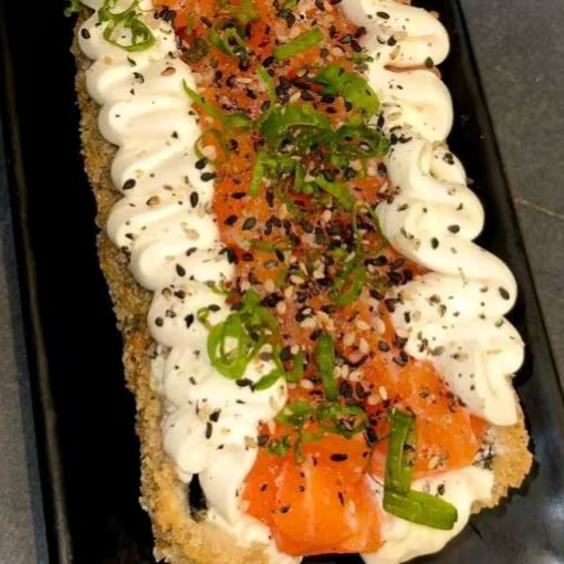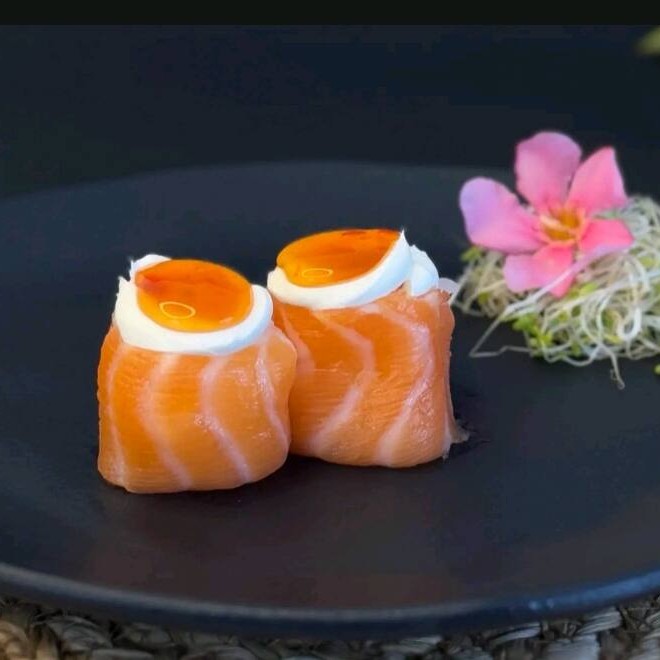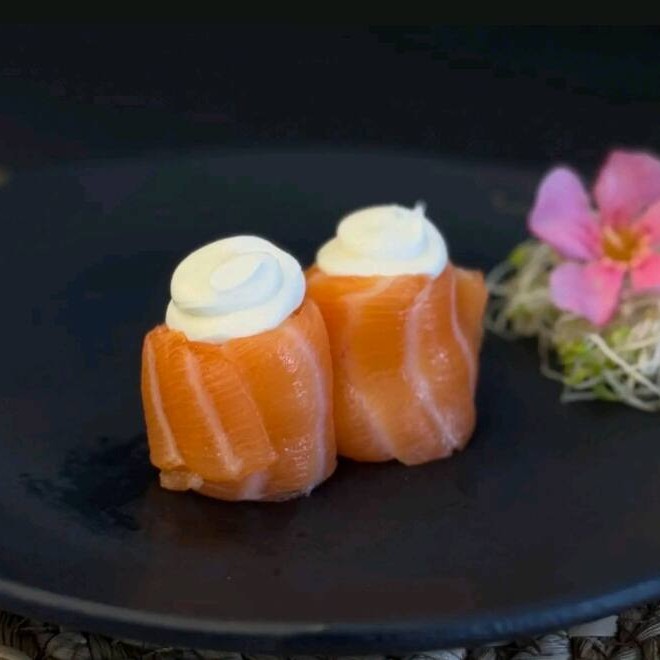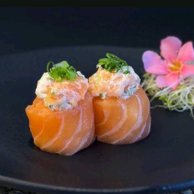 10 lua especial salmão enrolado com algas levemente macaricado com creme chesse e cebolinha.