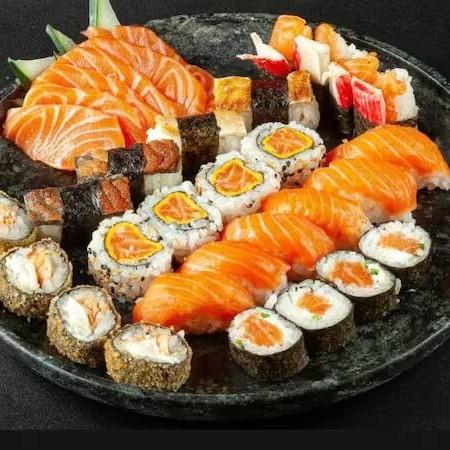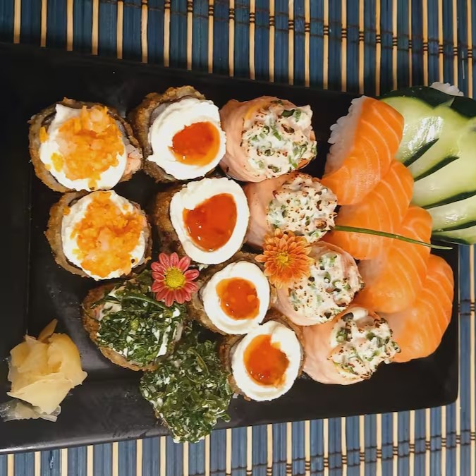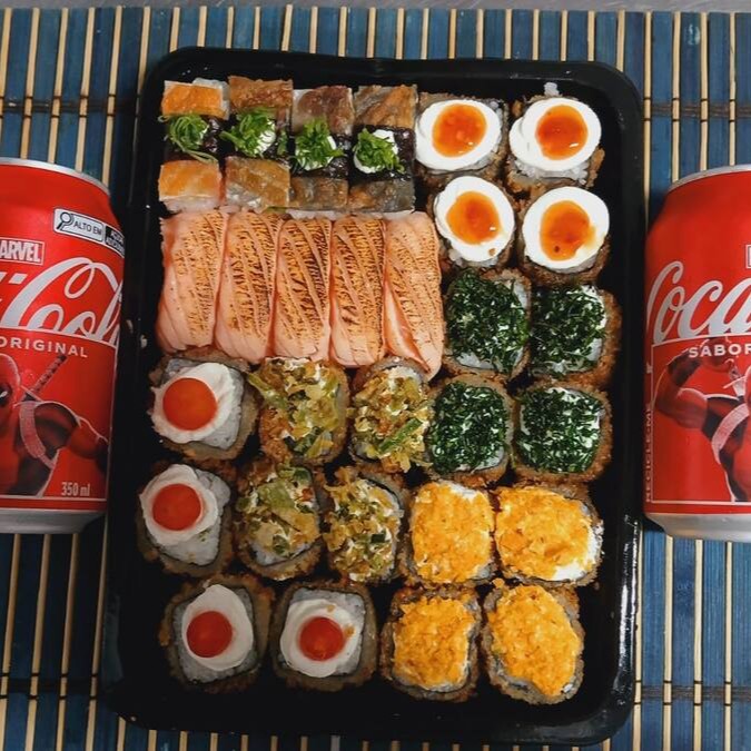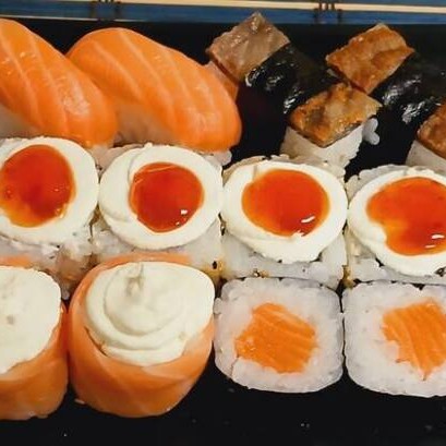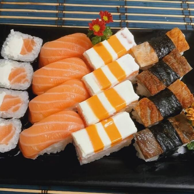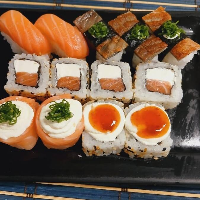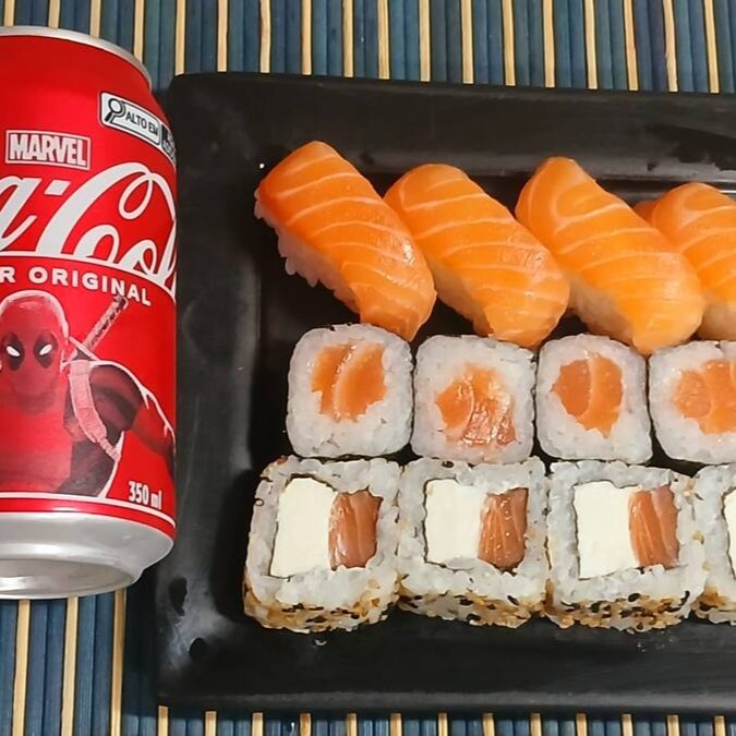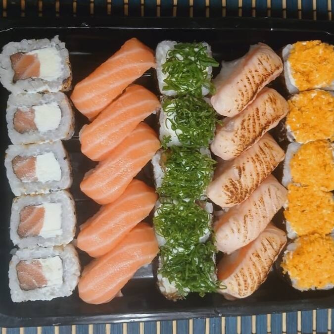 4 Maki Philadelfia - 4 Niguiri De Salmão- 4 Niguiri Skin- 4 Batera De Cream Cheese E Cheddar