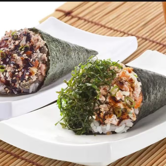 Temakis especiais da casa preparados com arroz japonês, envoltos em alga marinha com recheio generoso de salmão grelhado. Com peso aproximado de 180 gramas cada, esse combo serve até duas pessoas. O combo acompanha 2 sachês de molho tarê, de 8 gramas cada e 2 sachês de molho shoyu, também de 8 gramas cada.