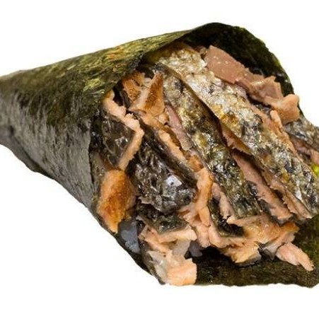 1 Temaki Skin - (Arroz, pele de salmão grelhado, cream cheese e cebolinha) aproximadamente 180 gramas peso final.