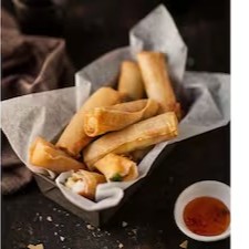 6 unidades rolinho de legumes frito, acompanha geleia de pimenta