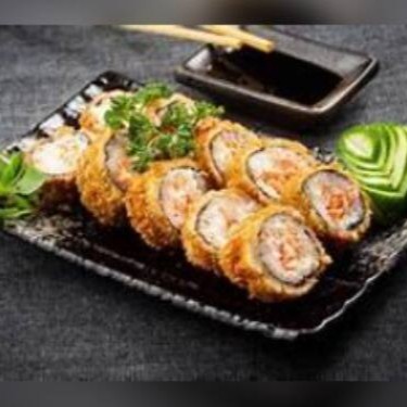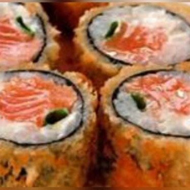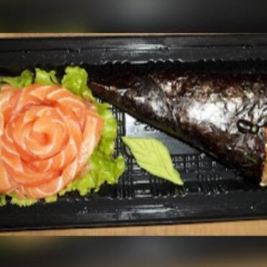Cone com arros e salmão, passado na farinha e fritado no óleo de algodão. 1 Coca-Cola 200ml