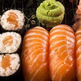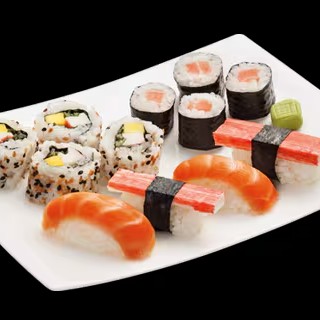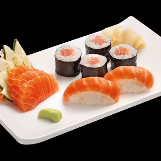 2 nigiri de salmão + 2 nigiri de kani + 4 califónia uramaki + 4 sakemaki