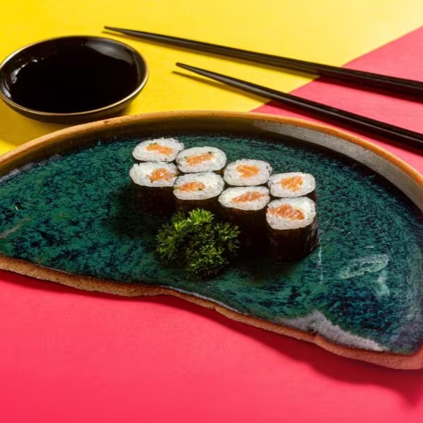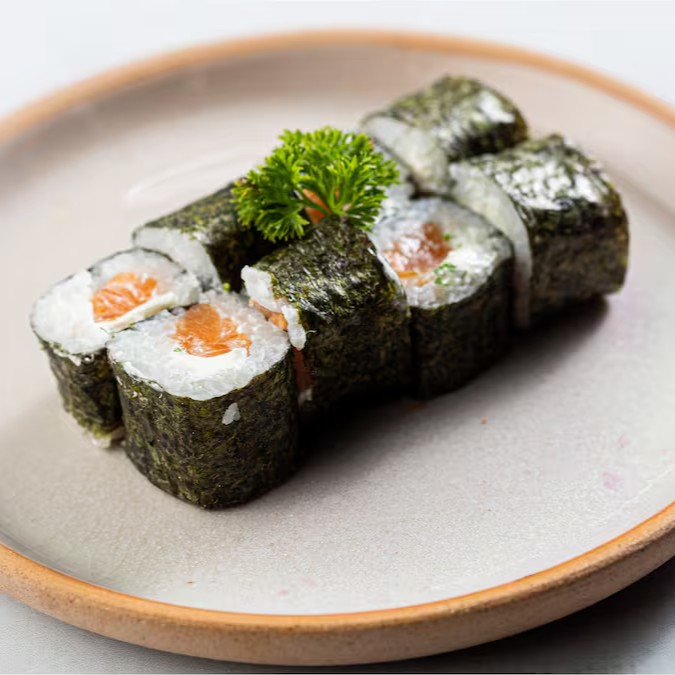 Sushi de Alga Nori e Arroz Gohan Recheado com Salmão e Cream Cheese.