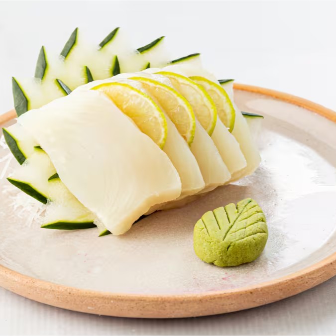 Fatias de peixe branco.