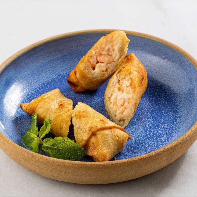 Rolinho primavera com camarão e Catupiry.