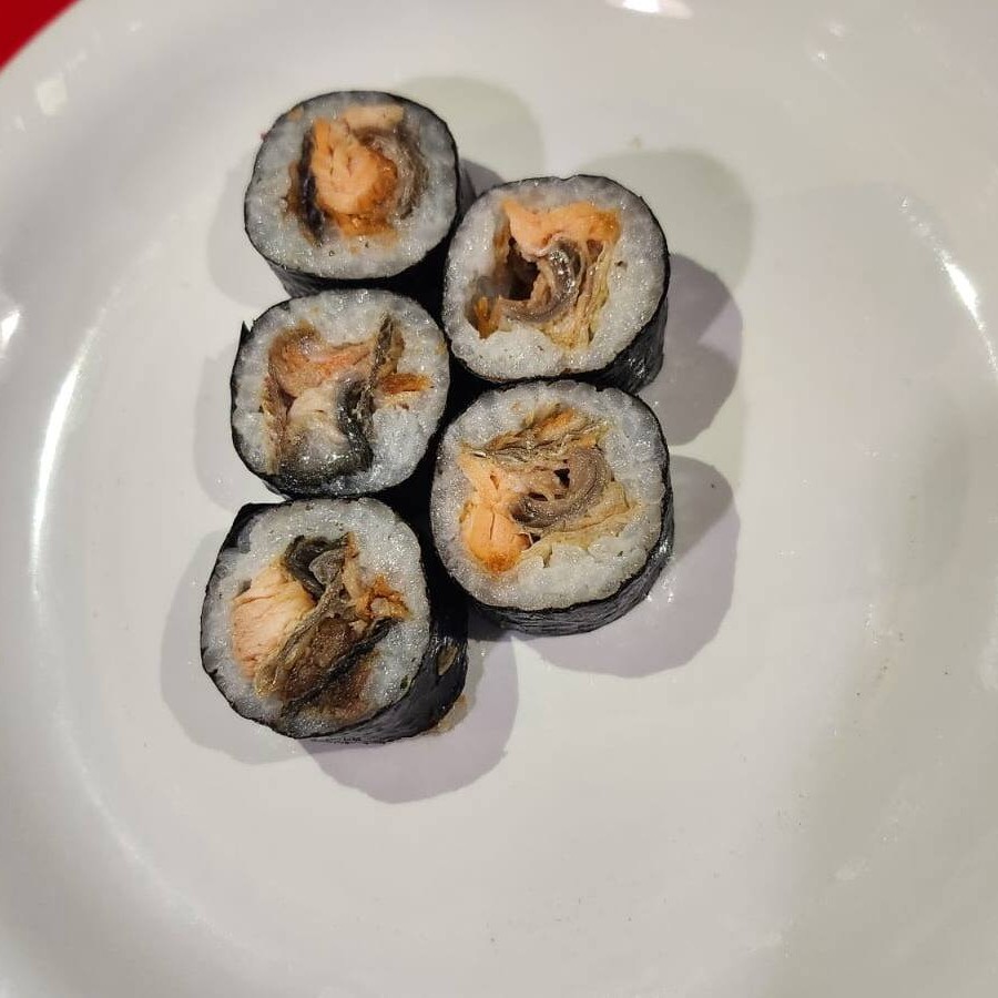 Alga, arroz, pele de peixe grelhada e molho teriaki **este item acompanha 2 sachês de shoyu e 1 de teriaki