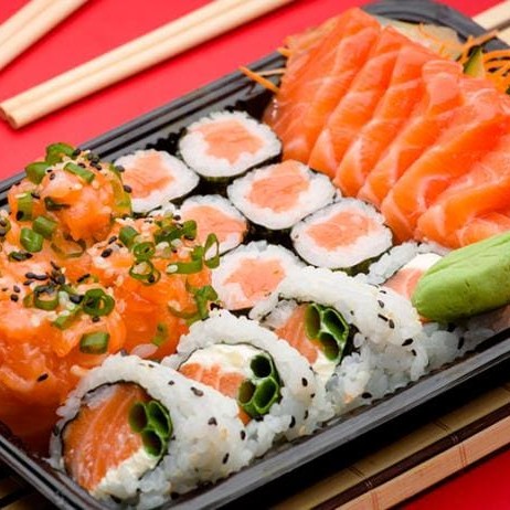 2 sashimi de salmao,2 niguiri de salmao,4 maki salmão,4 uramaki salmao grelhado,4 maki philadelfia. Acompanha 2 shoyu 1 teriaki 2 hashi.