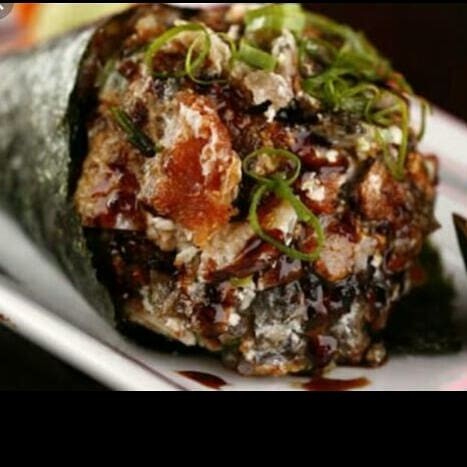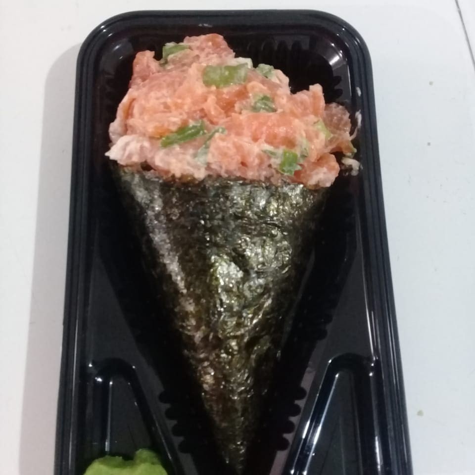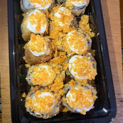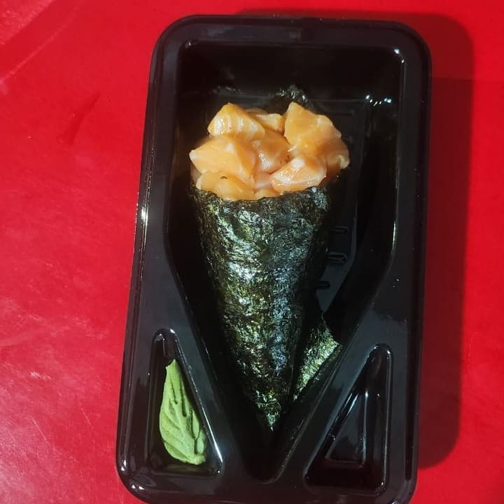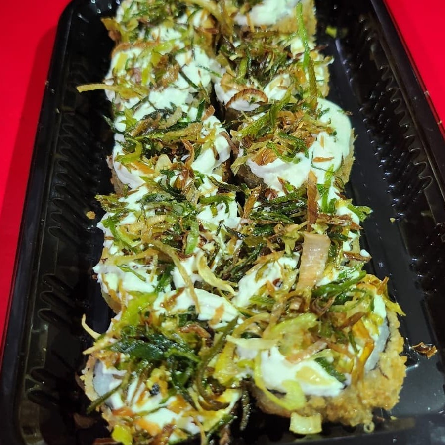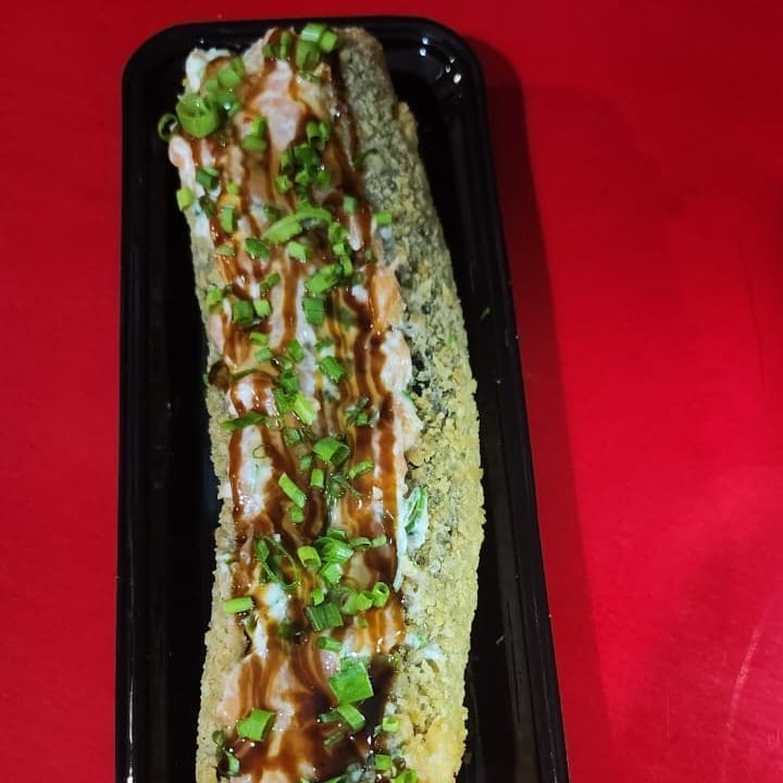 Alga, arroz japonês, salmão, cebolinha, creeam cheese, empanado na farinha panko e frito. Finalizado com Doritos. **Acompanha 1 hashi, 2 sachês de shoyu e 1 de teriaki.
