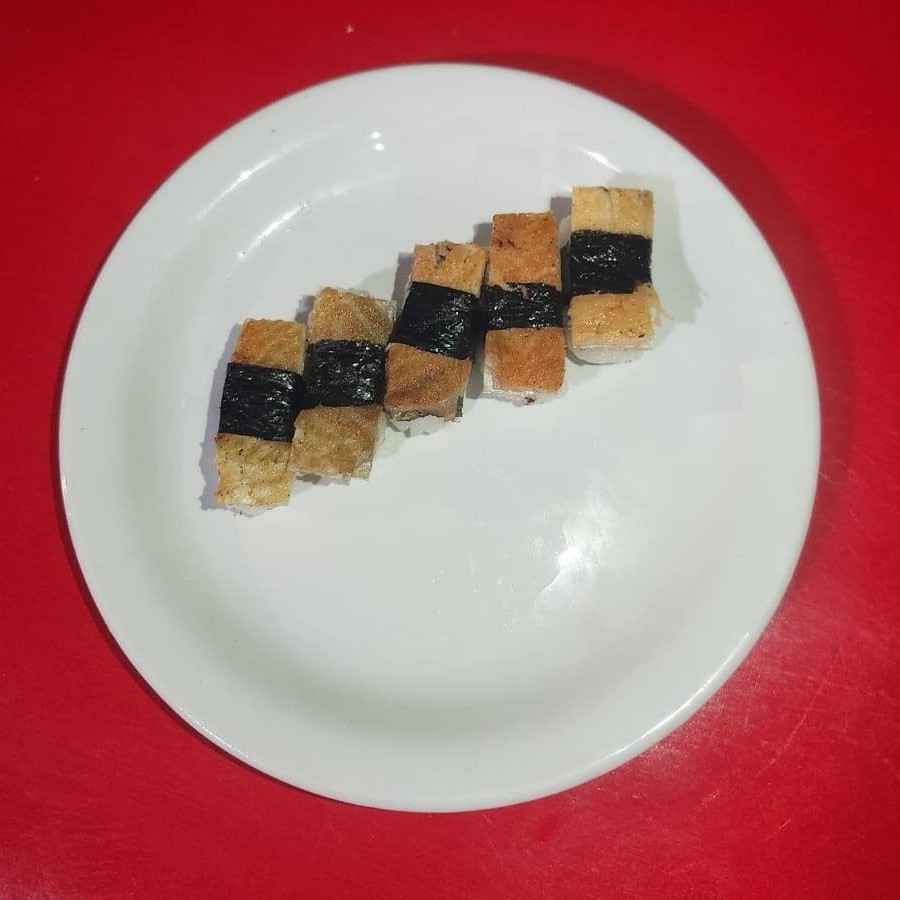 Alga,arroz e pele de salmão grelhada Não acompanha molho e hashi