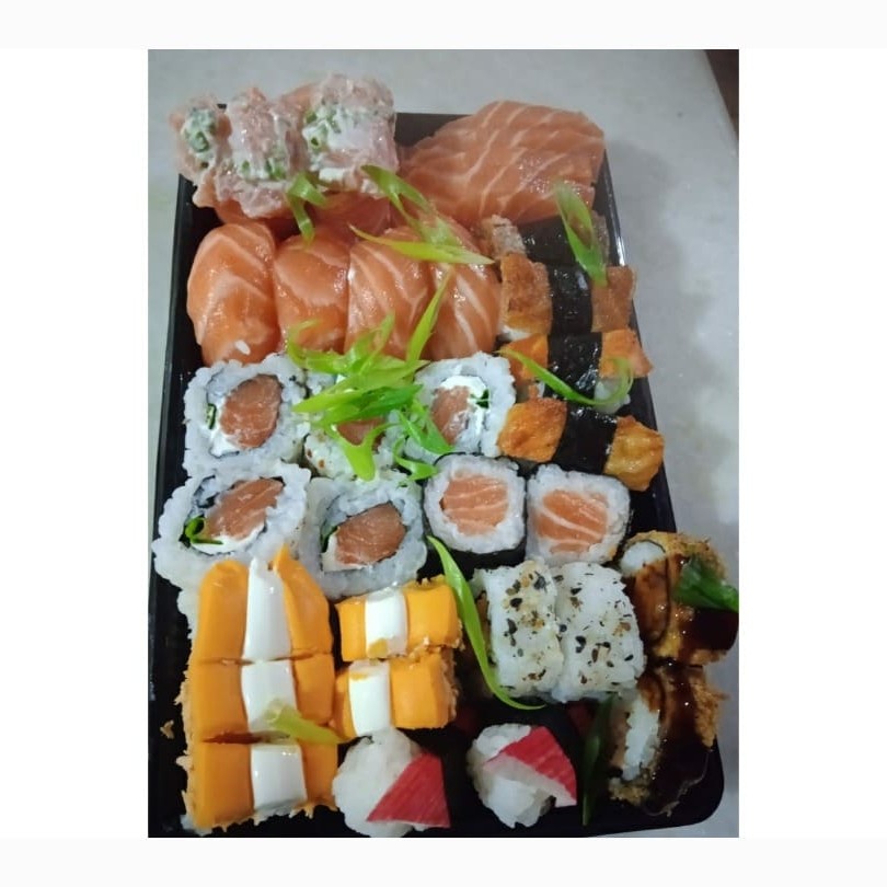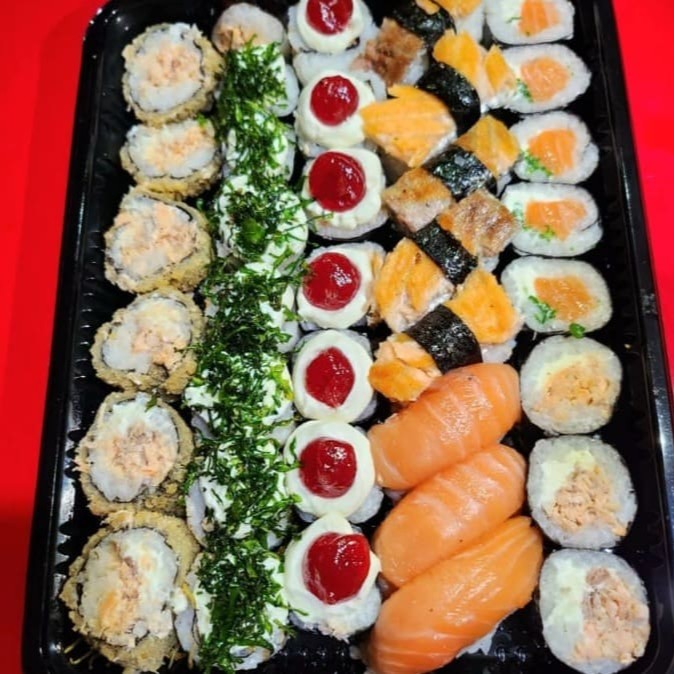 Combo com 70 peças montado pela casa **Este item acompanha 2 hashi, 4 sachês de shoyu e 4 sachê de teriaki.