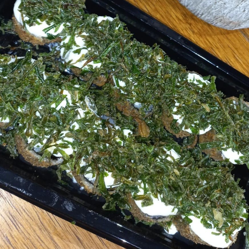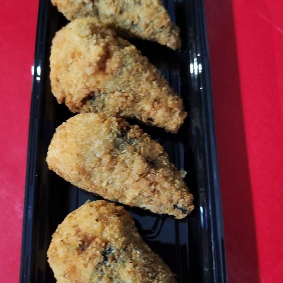 Alga, arroz, salmão, cream cheese e cebolinha empanados em farinha especial e frito * Este combo acompanha 2 sachês de shoyu e 1 de teriaki