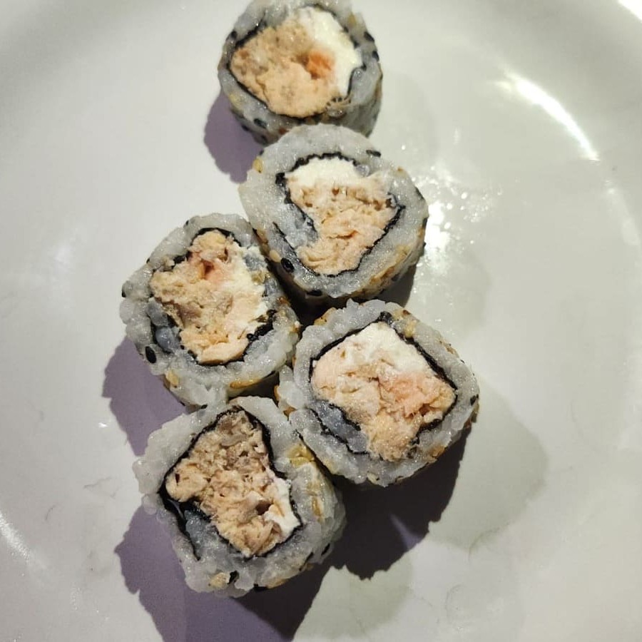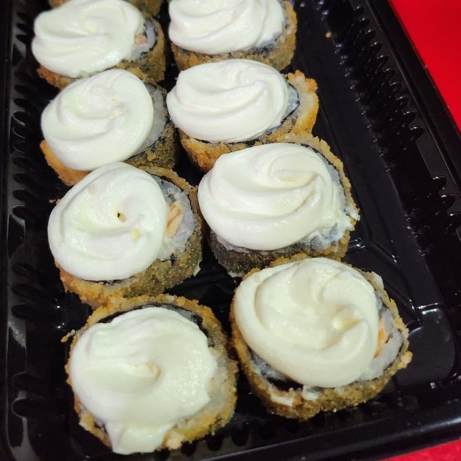 Alga, arroz, salmão, cream chesse , cebolinha, empanado com farinha especial e frito **Este item acompanha 2 sachês de shoyu e 1 de teriaki. **Não acompanha hashi.