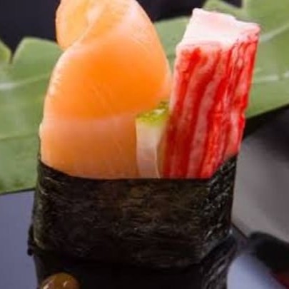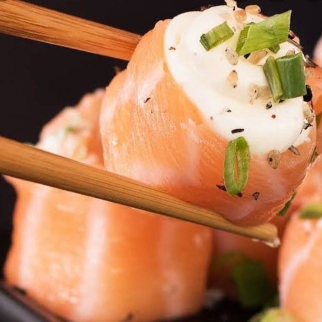 Bolinho de arroz japonês, envolto por fatia fina de salmão e finalizado com salmão, cream cheese e cebolinha. **Este item não acompanha molhos e hashi.