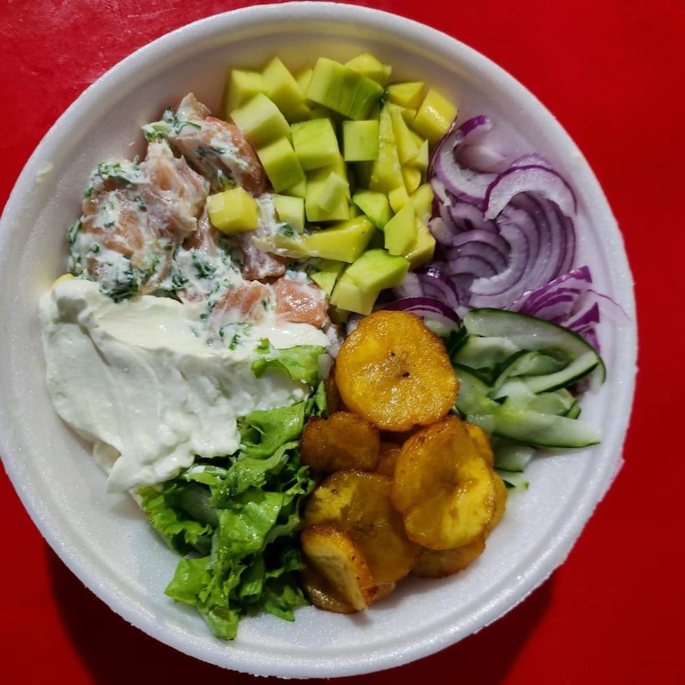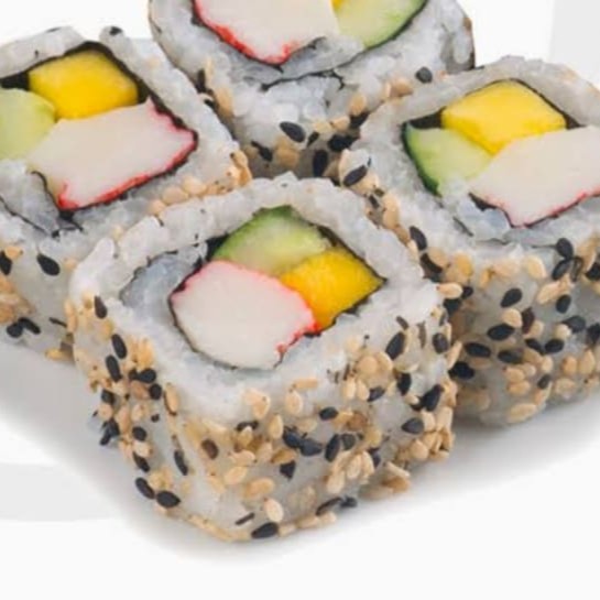 Salmão Philadélfia ,Arroz Japonês, Alface, Cebola Roxa, Nori, Sunomano, Manga e Cream Cheese