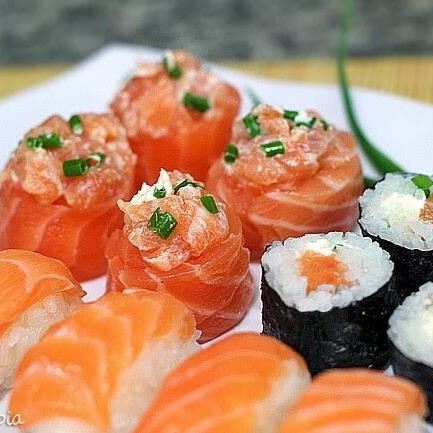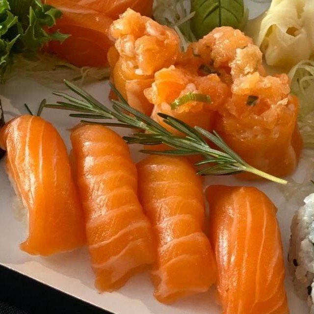 5 Sashimi Salmão, 5 Sushi Salmão, 4 Sushi Skin, 4 Uramake Filadelfia, 4 Maki Salmão, 4 Salmão Grelhado.