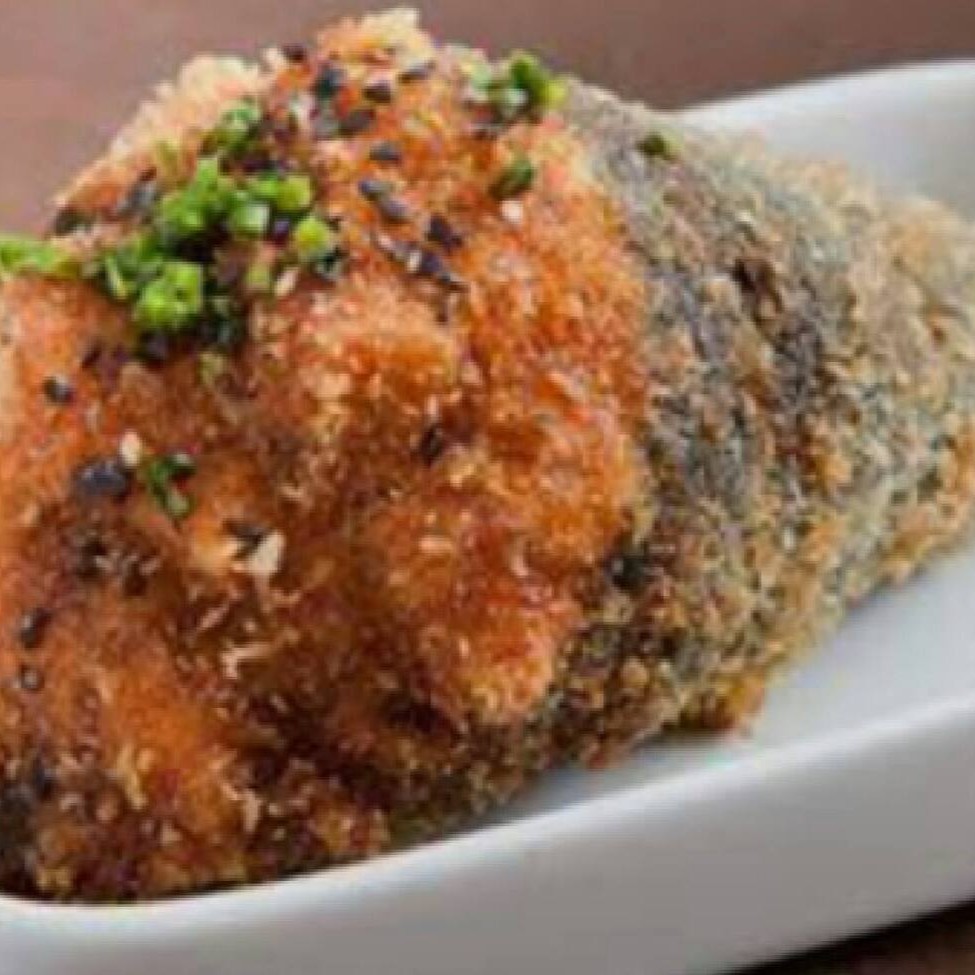 Camarão com requeijão empanado.