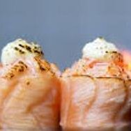 Cream cheese enrolado, lâmina de salmão