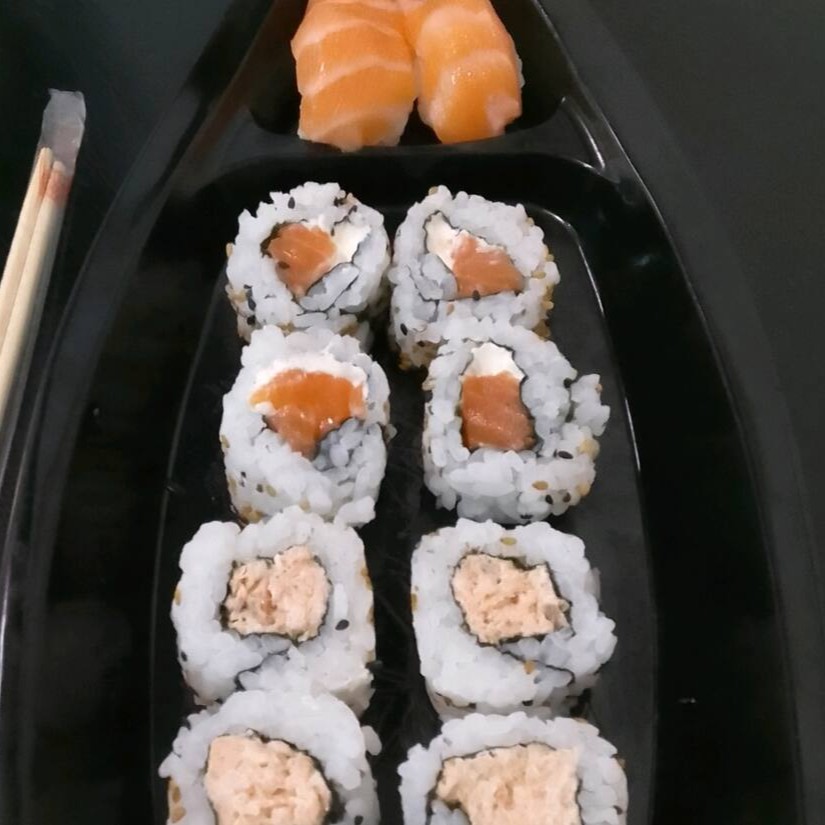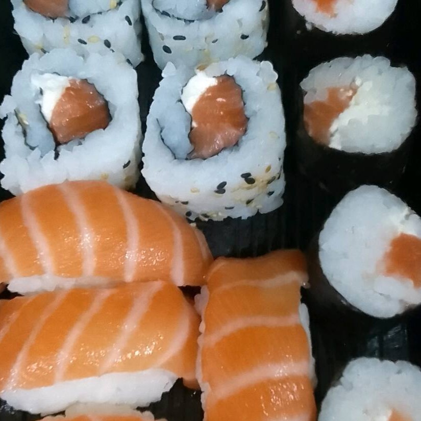 4 uramaki de salmão com cream cheese,4 maki de salmão,4niguiri de salmão
