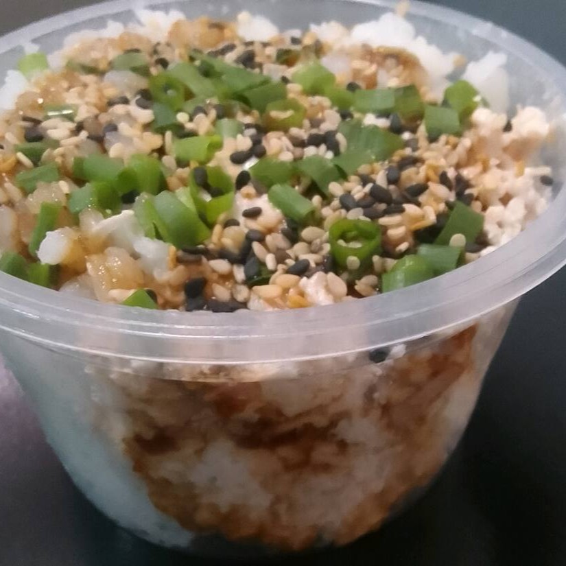 Acompanha arroz,salmão crú,cebolinha,cream cheese,gergelim,Shoyu e tare..
