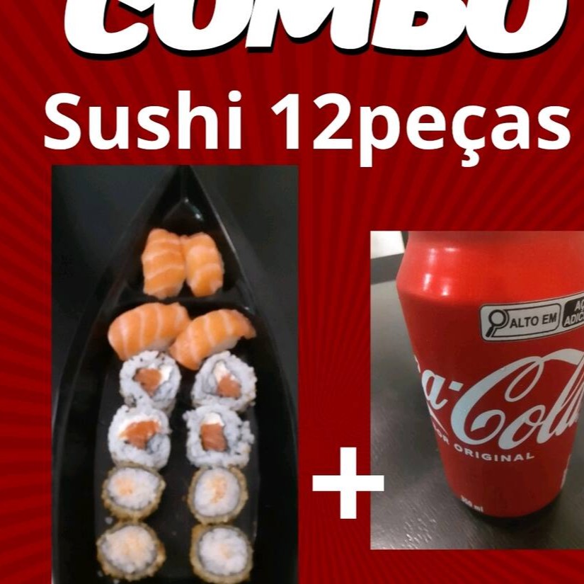 Neste combo voce vai levar um combo sushi 12 peças mais uma coca cola lata