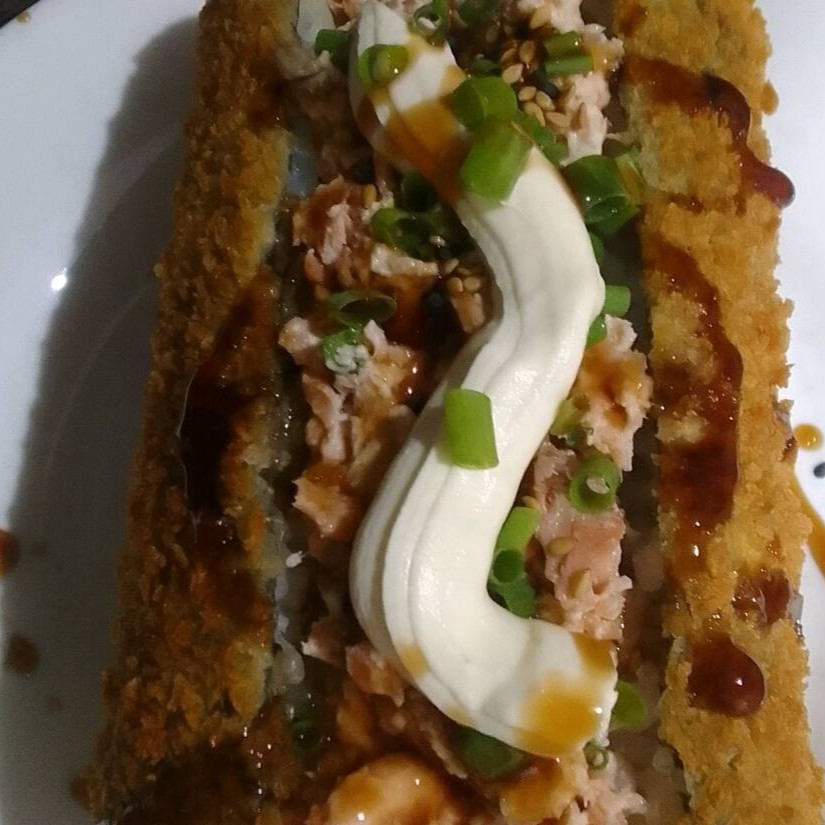 Hot Dog Médio De Salmão Cru Com Cream Cheese