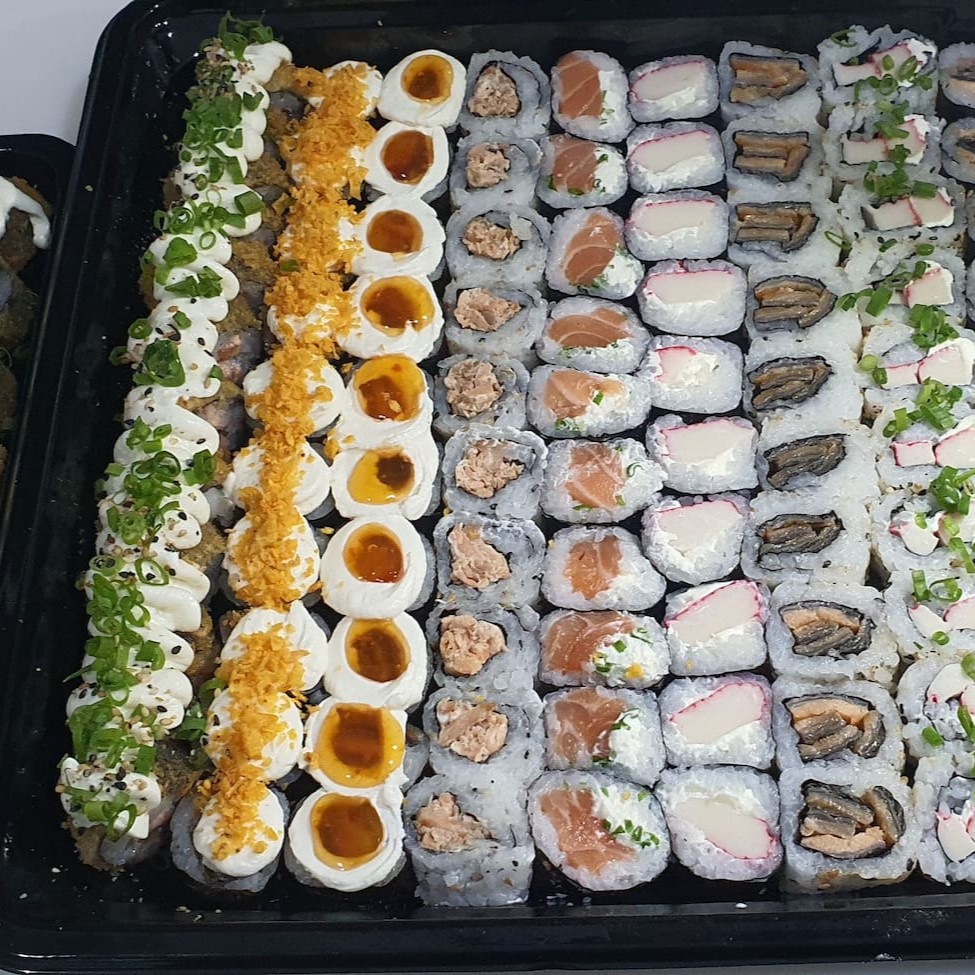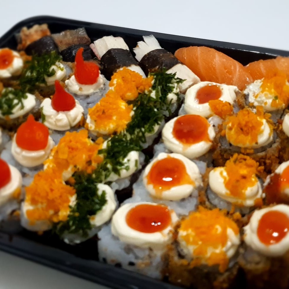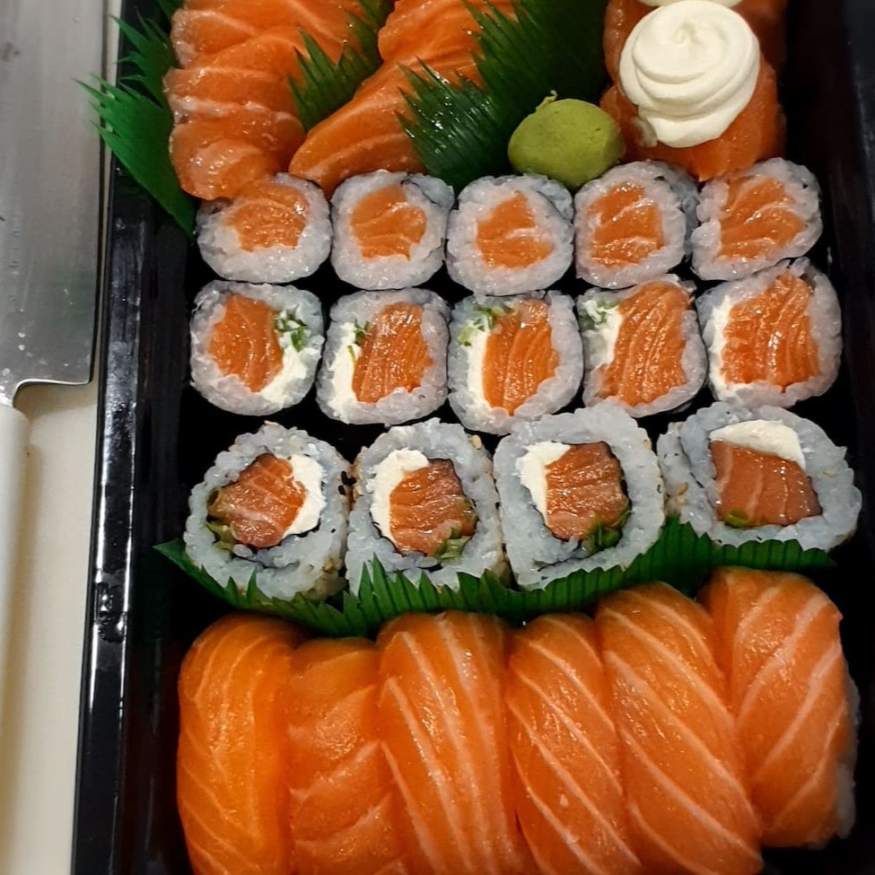 24 hot salmao com creme chesse ,10 hossomaki philadelfia ,10 hossomaki skin ,10 hossomaki kani ,10 hossomaki Doritos ,10 hossomaki swit ,10 uramaki skin ,10 uramaki salmao grelhado , 10 uramaki kani .