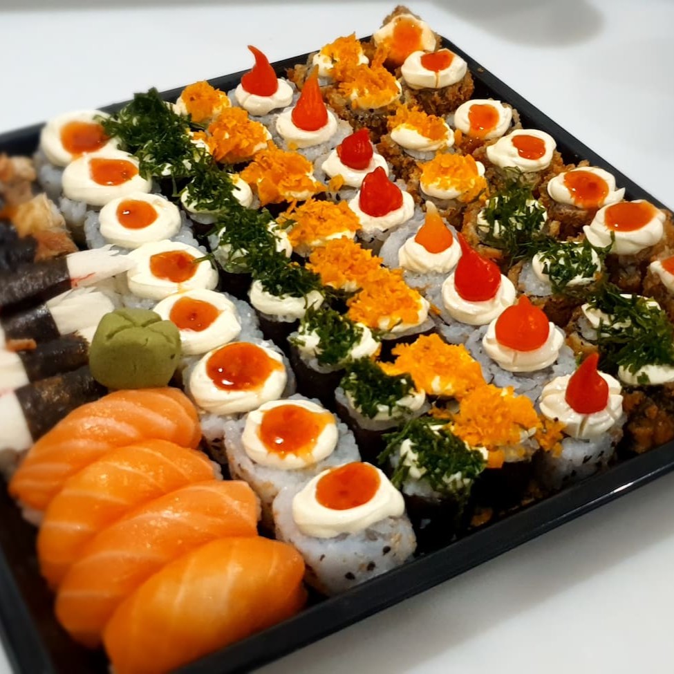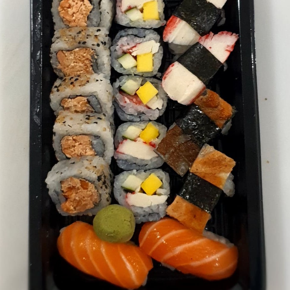 2 niguiri salmão 6 niguiri kani 5 maki Doritos 5 maki couve crisp 5 maki pimenta biquinho 5 maki geleia switch 20 hot