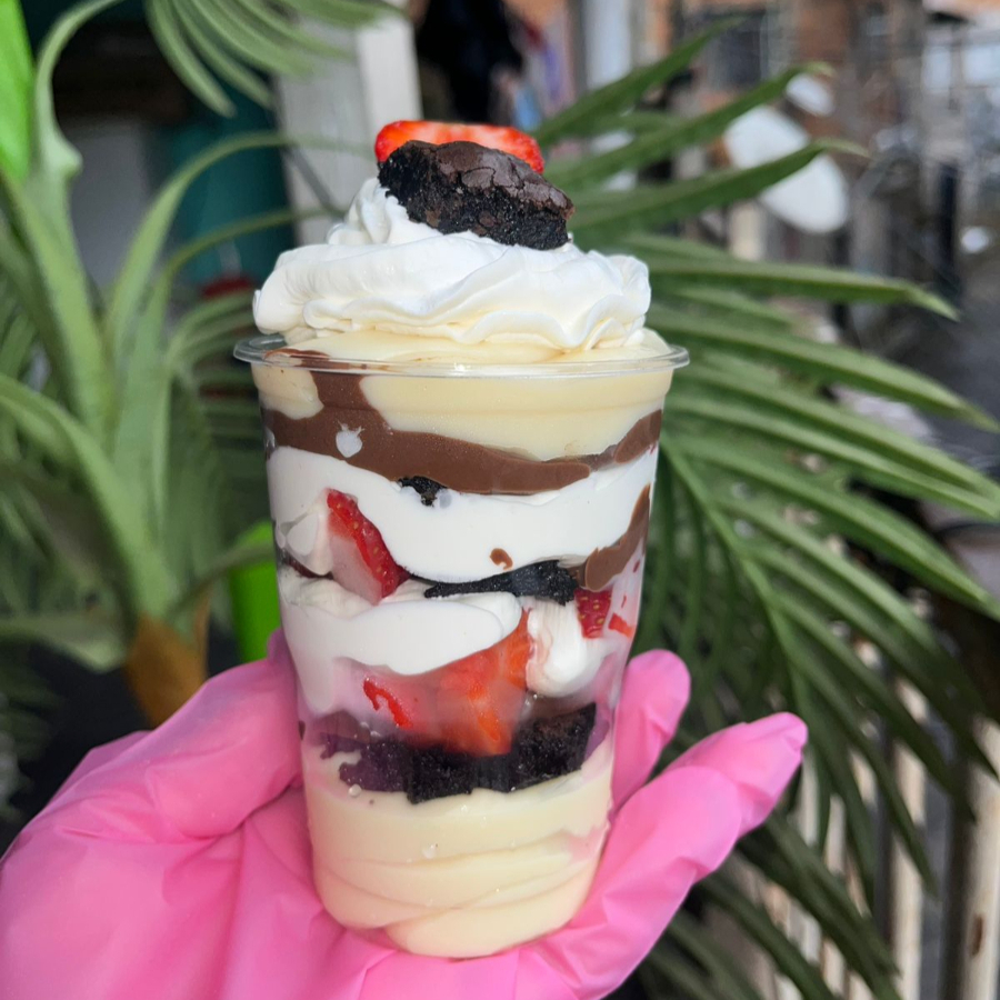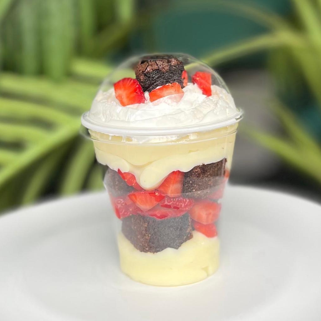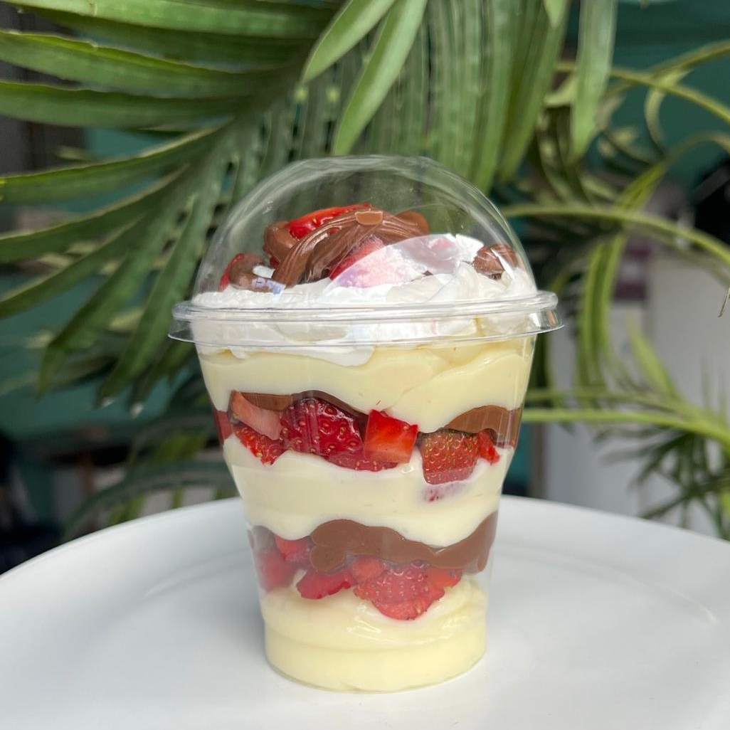 Copo 250ml acompanha camadas de doce de leite ninho,morangos, brownies e Nutella , creme de ninho e chantilly.