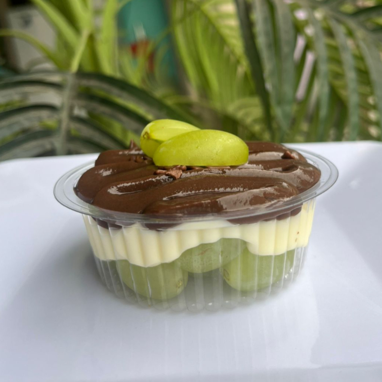 Acompanha uvas sem caroço, brigadeiro de leite ninho, brigadeiro de chocolate, finalizado com granulado em flocos e uva