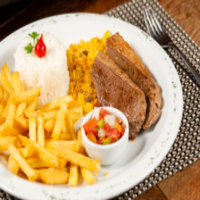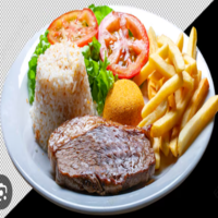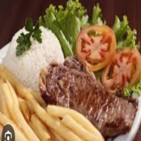 Bife de Boi, Arroz Branco ou Com Alho, Feijão, Batata Frita,Salada