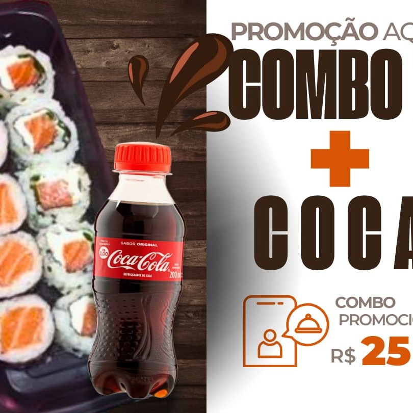 Super Promoção!!!! Hot Roll Philadélfia Quantidade: Coca-Cola Pet Original 200ml: 1 unidades Sabor de acordo com disponibilidade