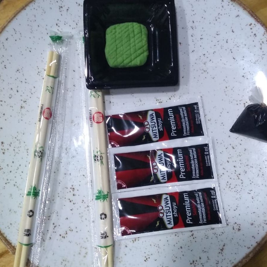3 shoyu, 1 taré 2 Hashi 1 wasabi 2 nozoki