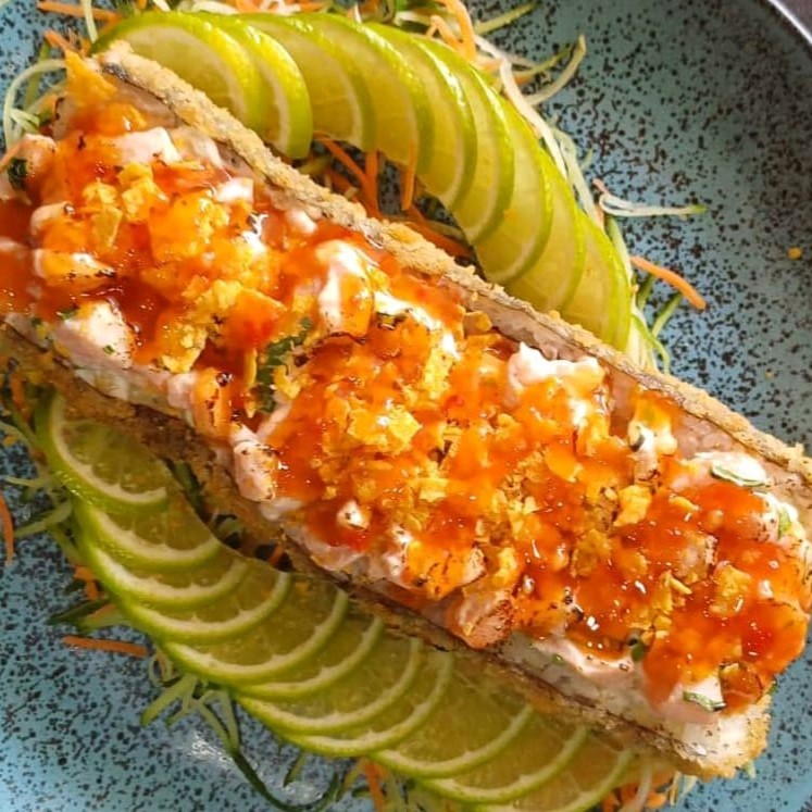 Hot Roll de arroz empanado, recheado com o mais cremoso cream cheese. Ele é complementado por um salmão, meticulosamente flambado para acentuar seus sabores ricos e intensos. Cada mordida é finalizada com a crocância inigualável do Doritos frito. Uma combinação intrigante de texturas e sabores que promete deleitar seu paladar! Não Acompanha Molhos e Descartáveis. (São vendidos à parte os molhos e descartáveis) #sushi#comidajaponesa#sashimi#niguiri#japa#temaki#hot##japonesa #chinesa #shoyo #salmão #camarão #suhi #yakisoba