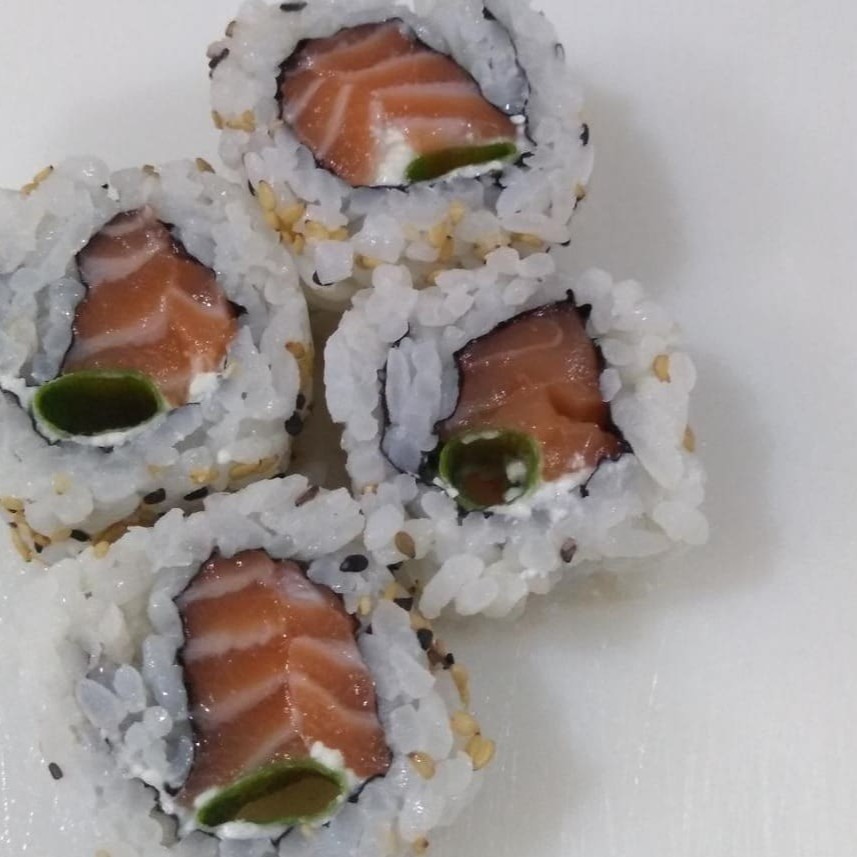 Este prato prima pela qualidade, oferecendo quatro unidades de uramaki meticulosamente enroladas, recheadas com um generoso pedaço de salmão fresco e o toque cremoso e suave do cream cheese. Tudo isso envolto por um delicado arroz com gergelim, que acrescenta uma textura única. Nota: Molhos e descartáveis não estão inclusos e podem ser adquiridos separadamente. Uma experiência de sabor que vai além da tradicional culinária japonesa, perfeita para amantes de sushi, sashimi, nigiri, temaki e yakisoba. #sushi #comidajaponesa #sashimi #nigiri #japa #temaki #hot #japonesa #chinesa #shoyo #salmao #camarao #suhi #yakisoba