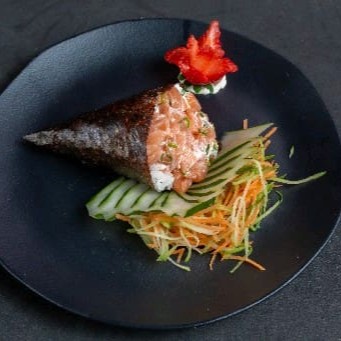 Delicie-se com o nosso 'Temaki Hot Salmão Grelhado', uma unidade de temaki meticulosamente frito, que apresenta uma textura crocante por fora e uma suculência sem igual por dentro, graças ao nosso salmão de alta qualidade, grelhado à perfeição. Por favor, note que molhos e descartáveis são vendidos separadamente. Desfrute deste saboroso temaki, uma verdadeira obra-prima da culinária oriental. #sushi #comidajaponesa #sashimi #niguiri #japa #temaki #hot #japonesa #yakisoba
