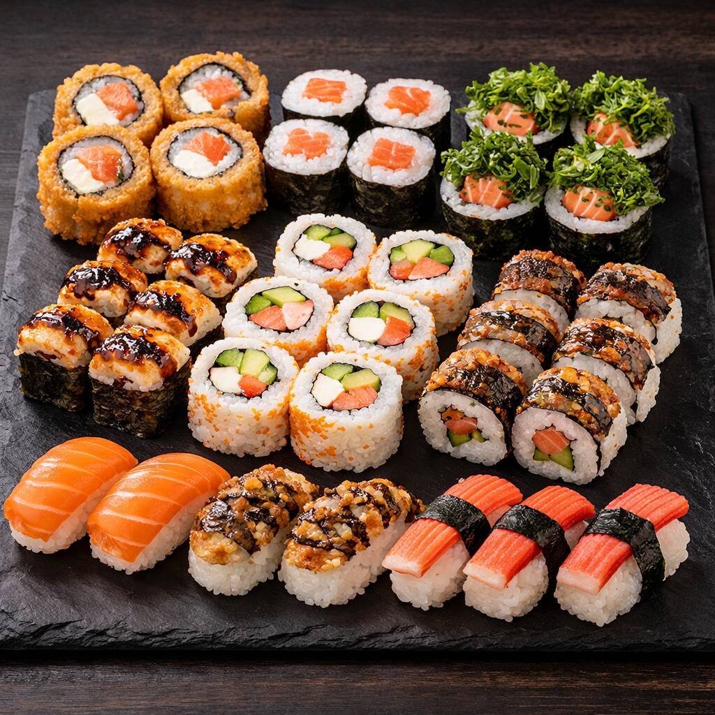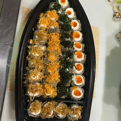 (espesial ) 4 gunka sweet, 5 mak filadélfia, 5 uramak filadélfia, 4 niguiri de salmão,5 sashime de salmao 4 niguiri iskin, 5 mak salmao grelhado e 5 mak pimenta biquínnho.