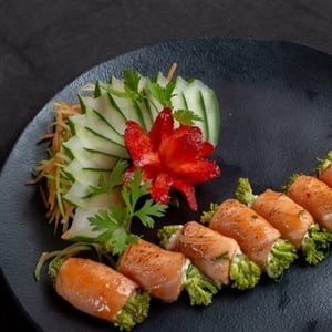 8 unidades de salmão maçaricado recheado com brocólis e cream cheese.