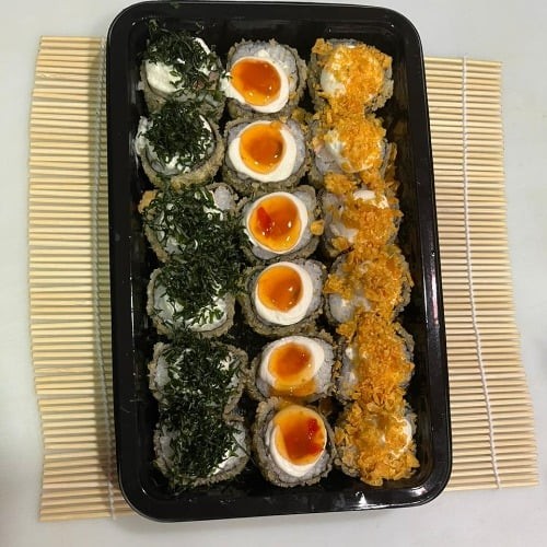 10 Uramaki Slamão Grelhado 10 Uramaki Califórnia 10 Uramaki Skin 8 Niguiri de Salmão 8 Niguiri Skin Não Acompanha Molhos e Descartáveis. (São vendidos à parte os molhos e descartáveis) #sushi#comidajaponesa#sashimi#niguiri#japa#temaki#hot##japonesa #chinesa #shoyo #salmão #camarão #suhi #yakisoba