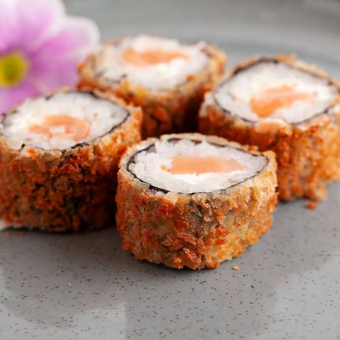 Sushis quentes: empanados e recheados. Escolha nas opções filadélfia, surpresa (couve crocante) e poró