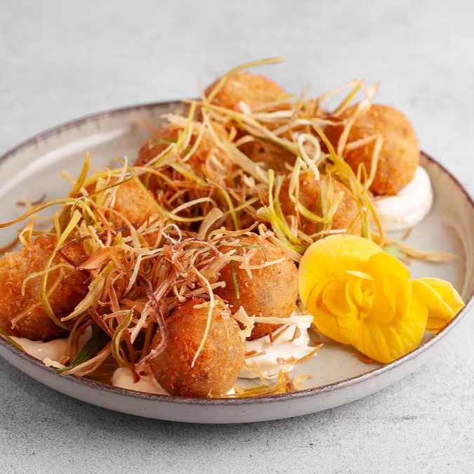 Bolinho De Salmão Com Crispy De Alho Poró (8 Unidades)